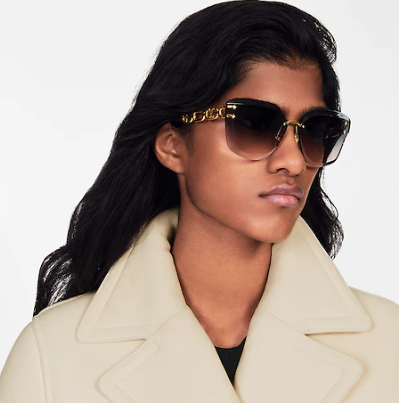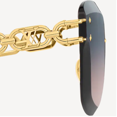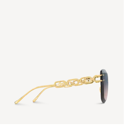 Delicate rimless lenses combine with bold chain-effect temples to give the LV Jewel Cat Eye sunglasses their unique look. Classic House signatures are revealed in subtle details throughout this piece. The iconic LV Initials are incorporated into the chain link design and hand-polished Monogram Flower studs adorn the smoky gradient lenses.