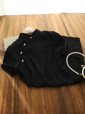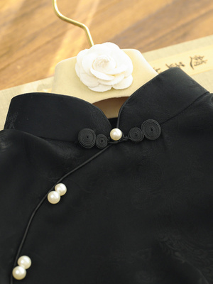 Fabric: Polyester pattern: Animal style: retro style: Short Cheongsam front Shape: bevelled color classification: black Content: 81%(inclusive)-90%(inclusive) Market year Season: 2022 Spring Sleeve length: short sleeve Applicable scene: daily slit height: low slit design cut: piping