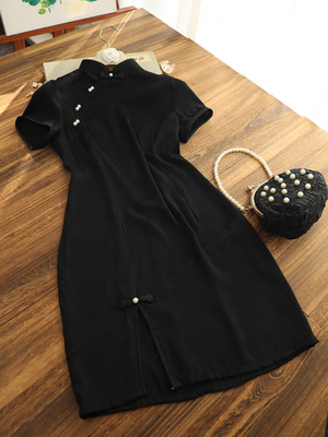 The new spring Chinese style black jacquard small cheongsam slit at the front