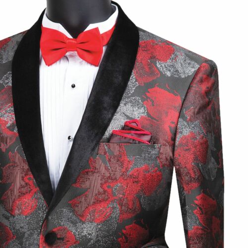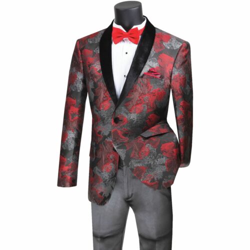 VINCI Men's Ruby Red Metallic Floral Pattern 2 Button Slim Fit Blazer NEW