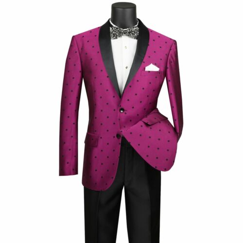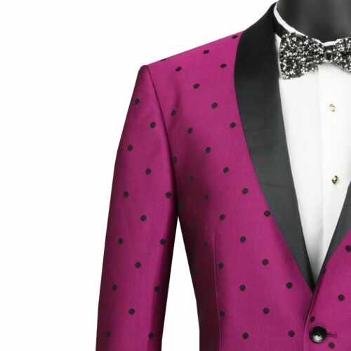 VINCI Men's Fuchsia Polka Dot 2 Button Slim Fit Tuxedo w/ Shawl Collar Suit NEW
