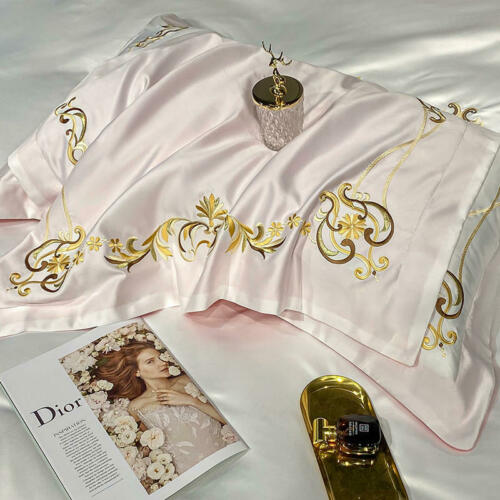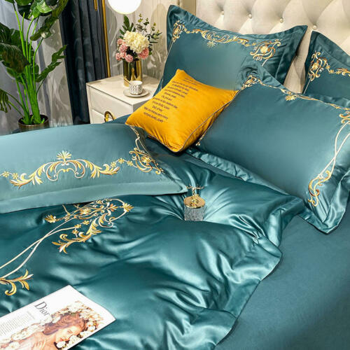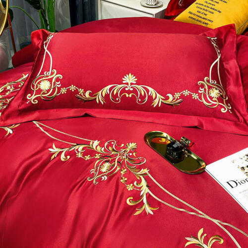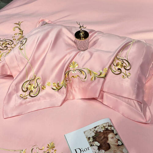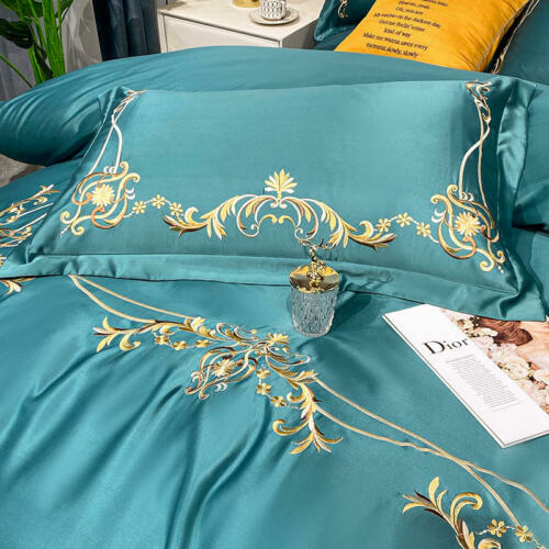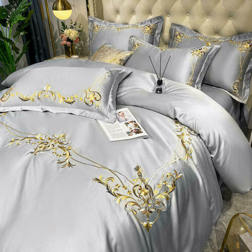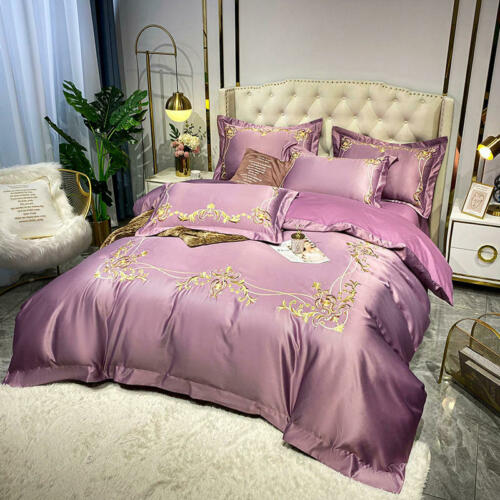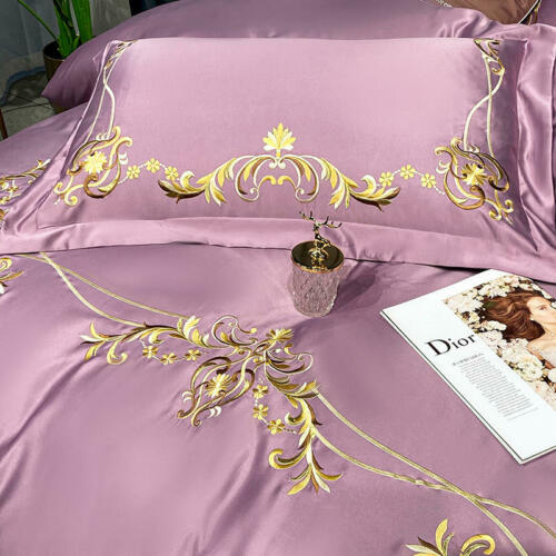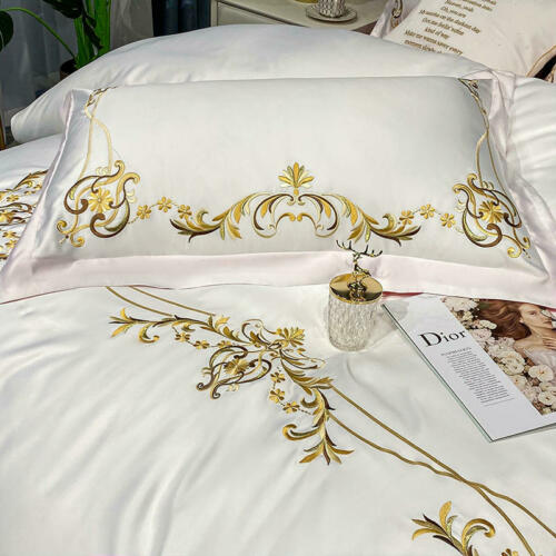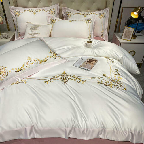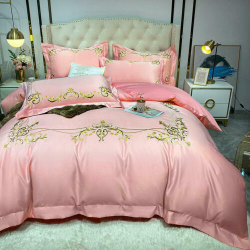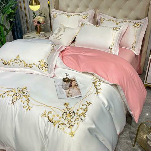 Silk cotton bedding set 4 pcs Simple embroidery quilt cover bed sheet pillowcase