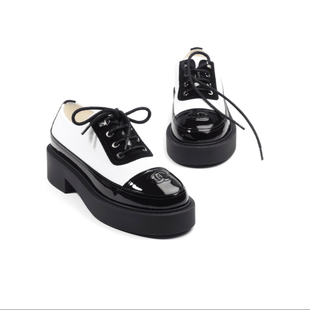 Chanel cowhide shoelace black women's style