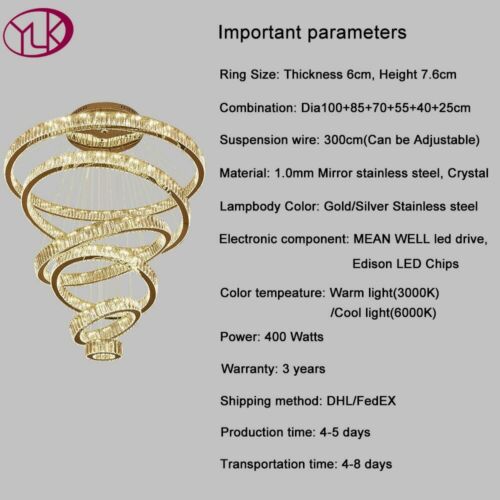 Luxury Living Room Modern Chandelier Lighting Large Staircase LED Crystal Lamps