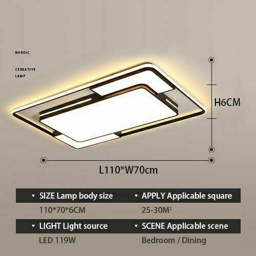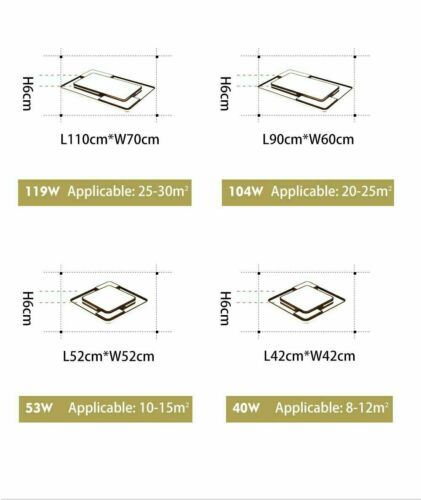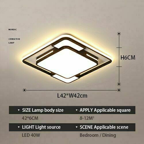 Led Black Square Ceiling Lamp DImmable Bedroom Living Dining Room Chandelier