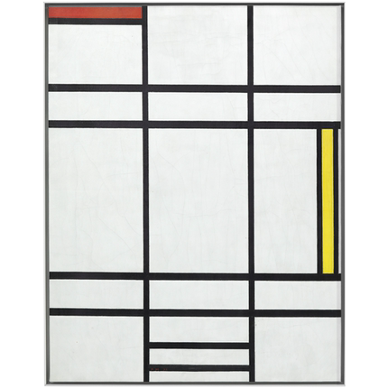 Genuine decorative painting with narrow metal edge/mondriaan abstract/red, yellow and white composition
