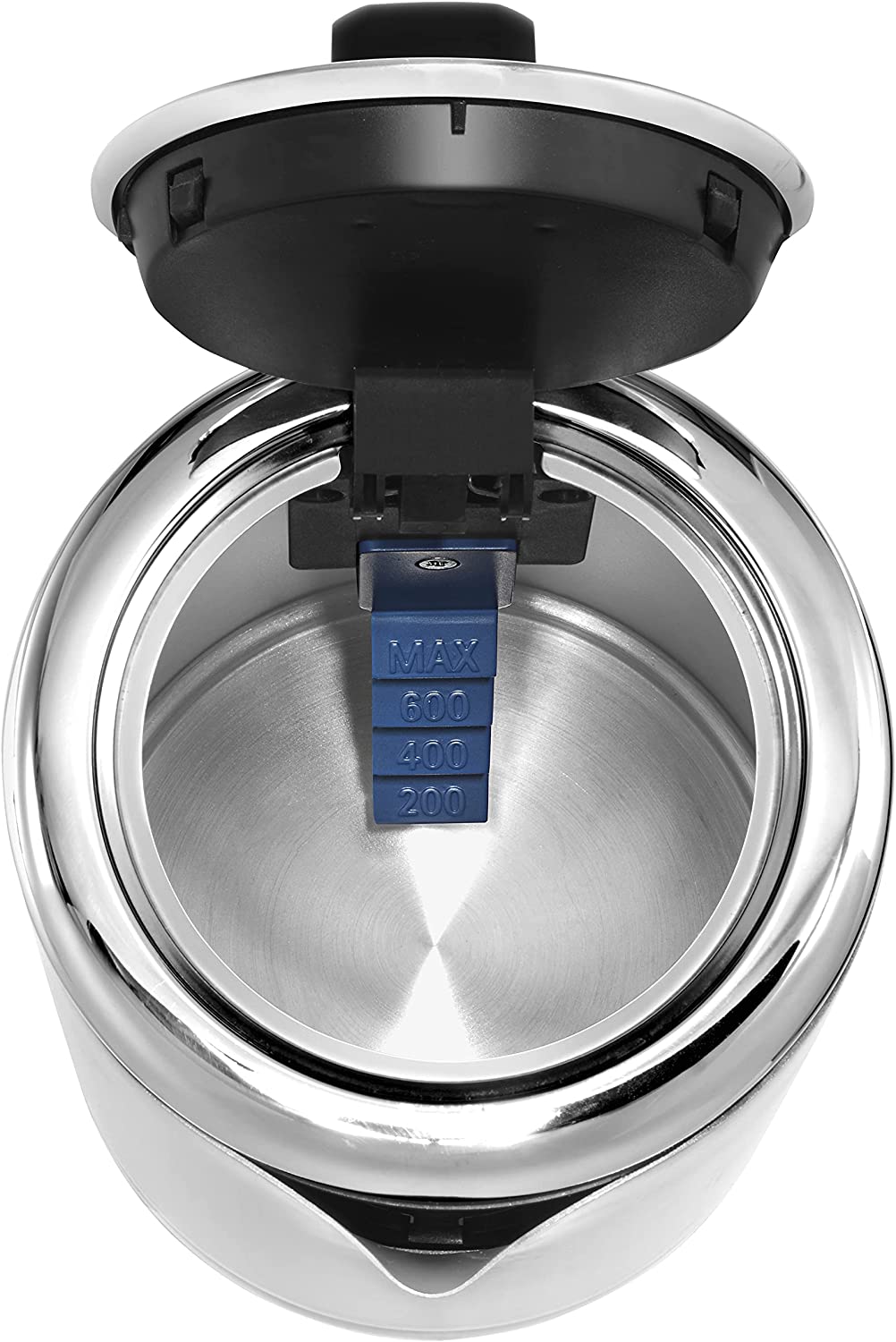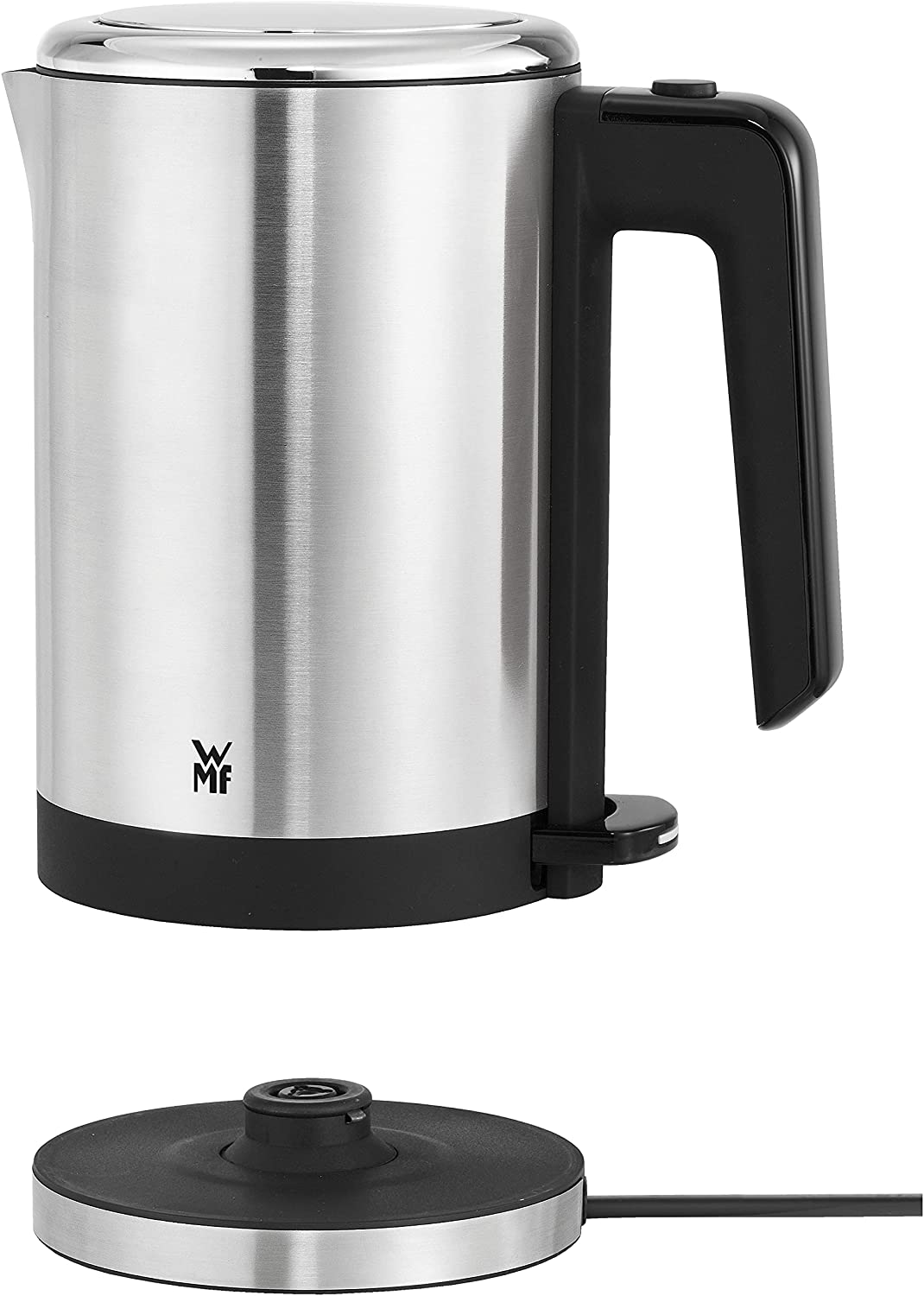WMF futengbao kitchen electric kettle (1800 W, 0.8L, electric kettle for travel, wireless teapot, automatic stop function), cromargan stainless steel, matt/silver.