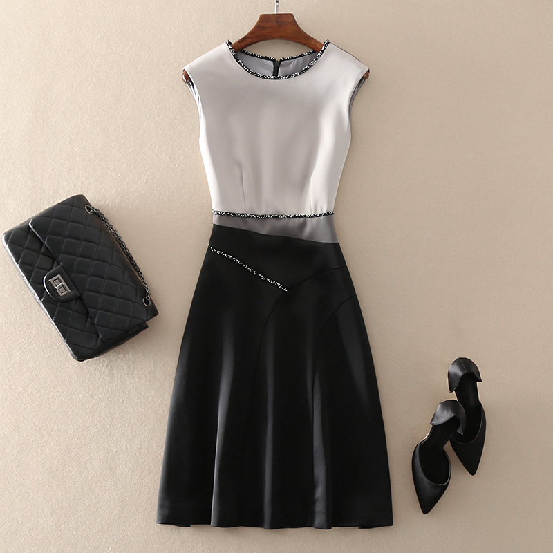 European and American big-name slimming sleeveless dress beaded dress 2022 spring and summer new high-end temperament women's clothing