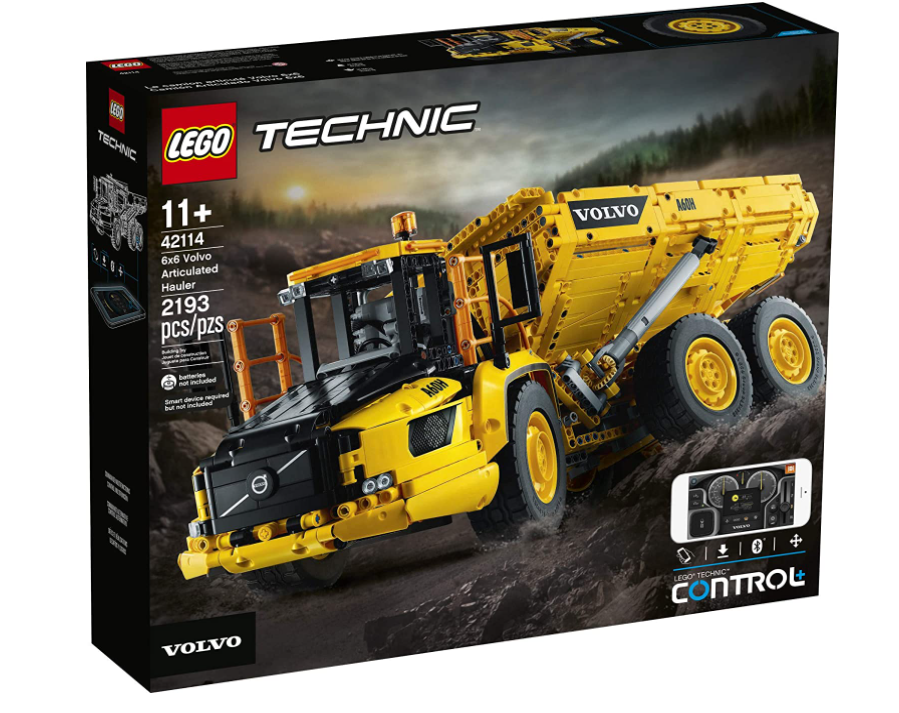 • With this LEGO Technic 6x6 Volvo Articulated Hauler 42114 building kit, kids can learn the secrets of mega construction machines as they steer, tip the bucket and change gear using the app