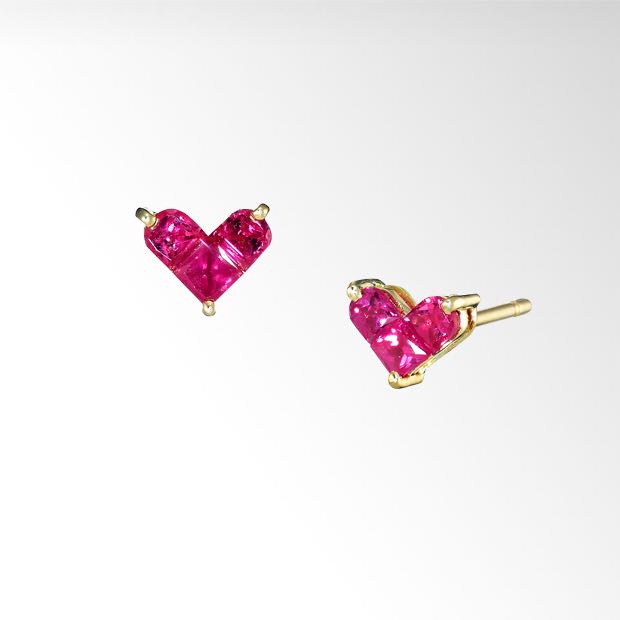 Ruby Heart Stud Earrings