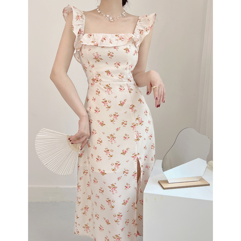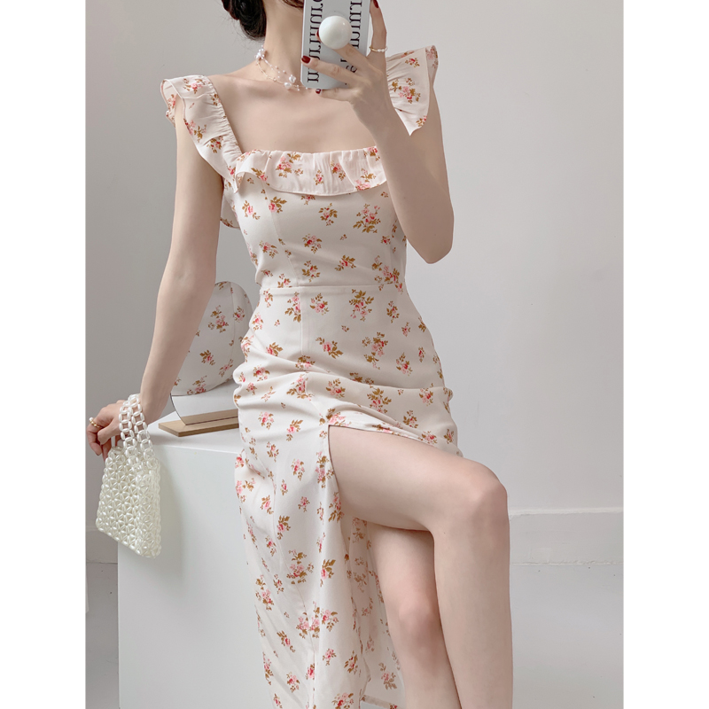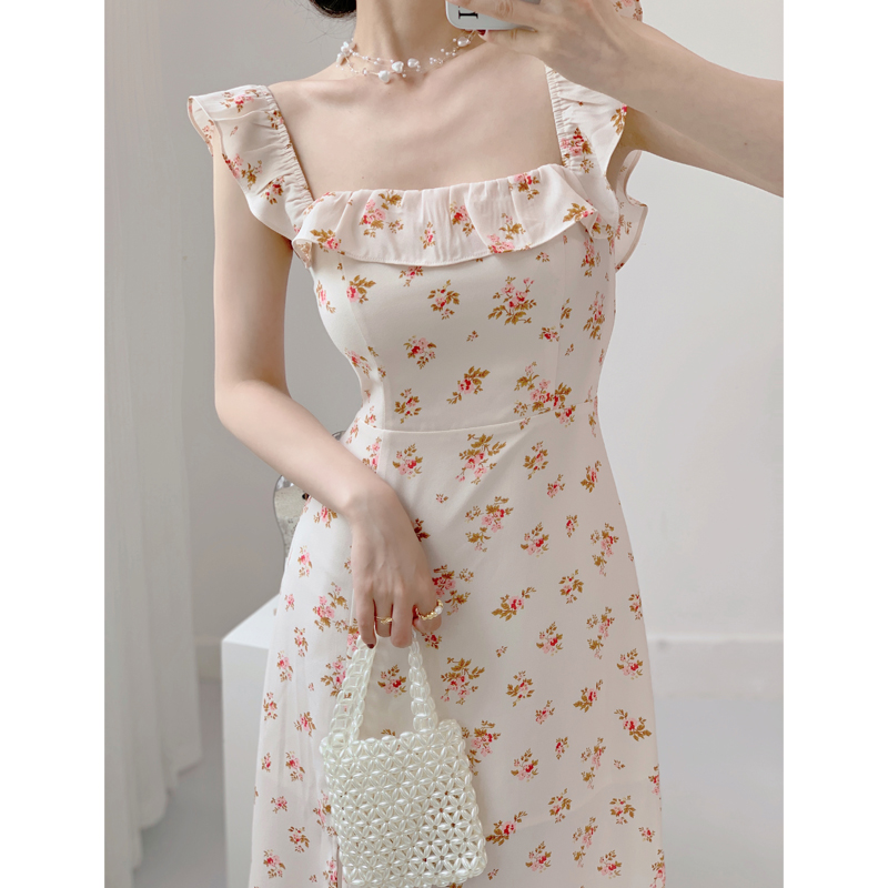 Summer 2022 French pure floral sexy high-waisted A-line halter halter halter dress