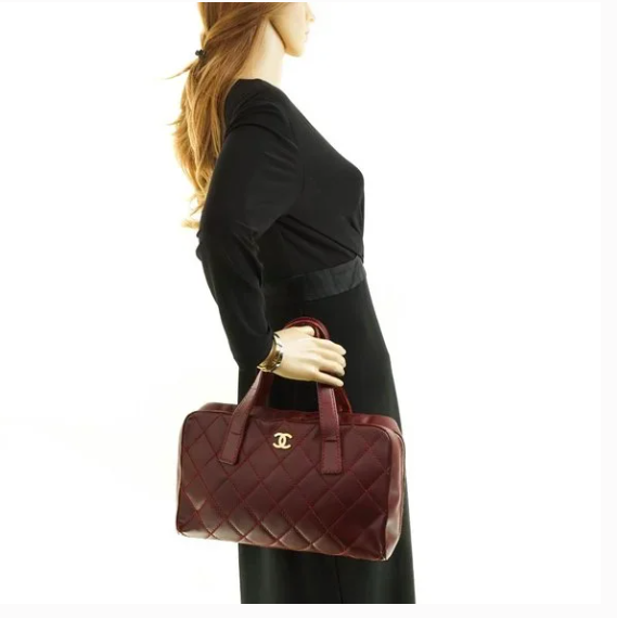 Auth Chanel Wild Stitch Bowling Tote #7655C53