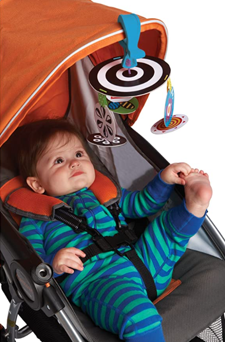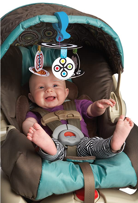 Double mirror can stimulate your baby's visual response. The mirror has two sides, one side is a high contrast pattern, and the other side is a solid safety mirror. The baby will be fascinated by this striking pattern and image, and become fond of looking at himself in the mirror. The mirror is suitable for baby to play on his stomach, and the ribbon on the mirror can let you hang it or go out to carry it. The mirror is about 40X25 in length and width.