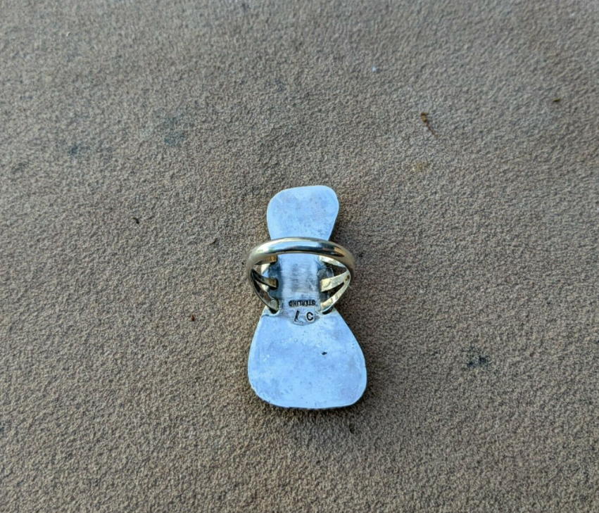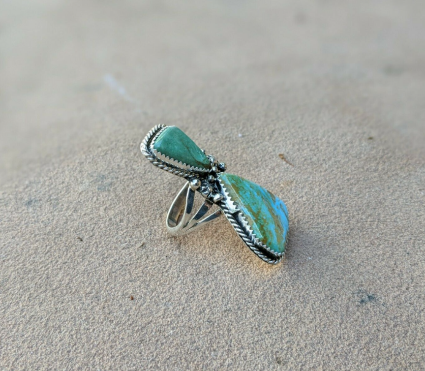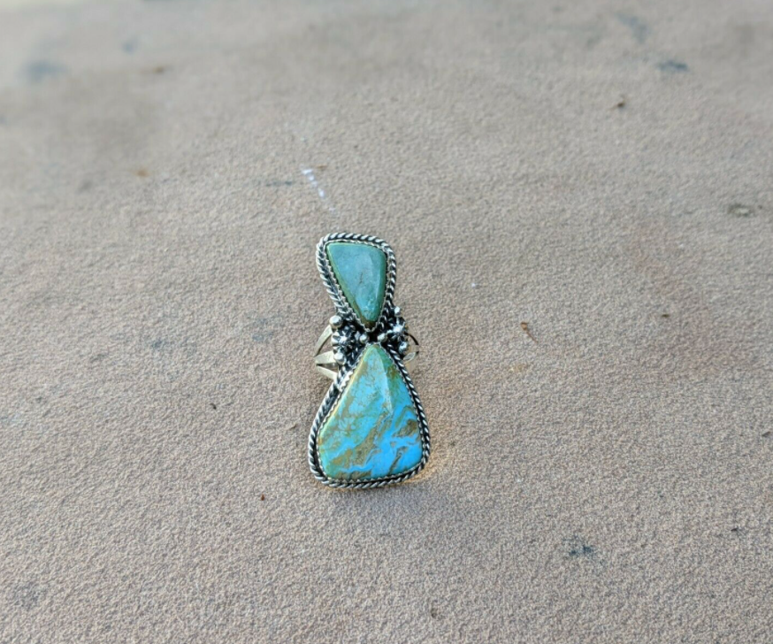Navajo Jewelry Ring KIngman Turquoise Stones size 8.25 Signed Native American