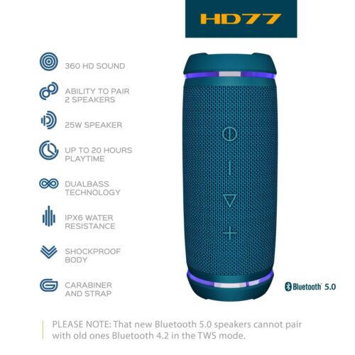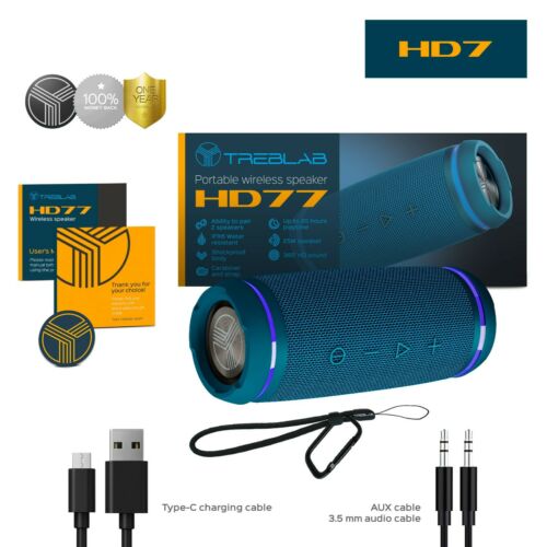 TREBLAB HD77 Blue - Premium Bluetooth Portable Speaker with up to 20H Playtime