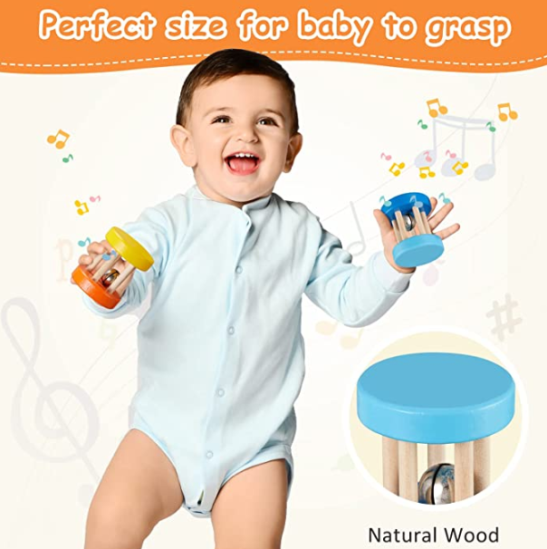 • Suitable Size: these wooden rattles are approx. 5 x 6 cm/ 1.97 x 2.36 inches, which is small and lightweight, the size of the kids maracas are approx. 16 x 4.5 cm/ 6.8 x 1.8 inches, and the suitable size is easy for babies to handle, so they can play freely