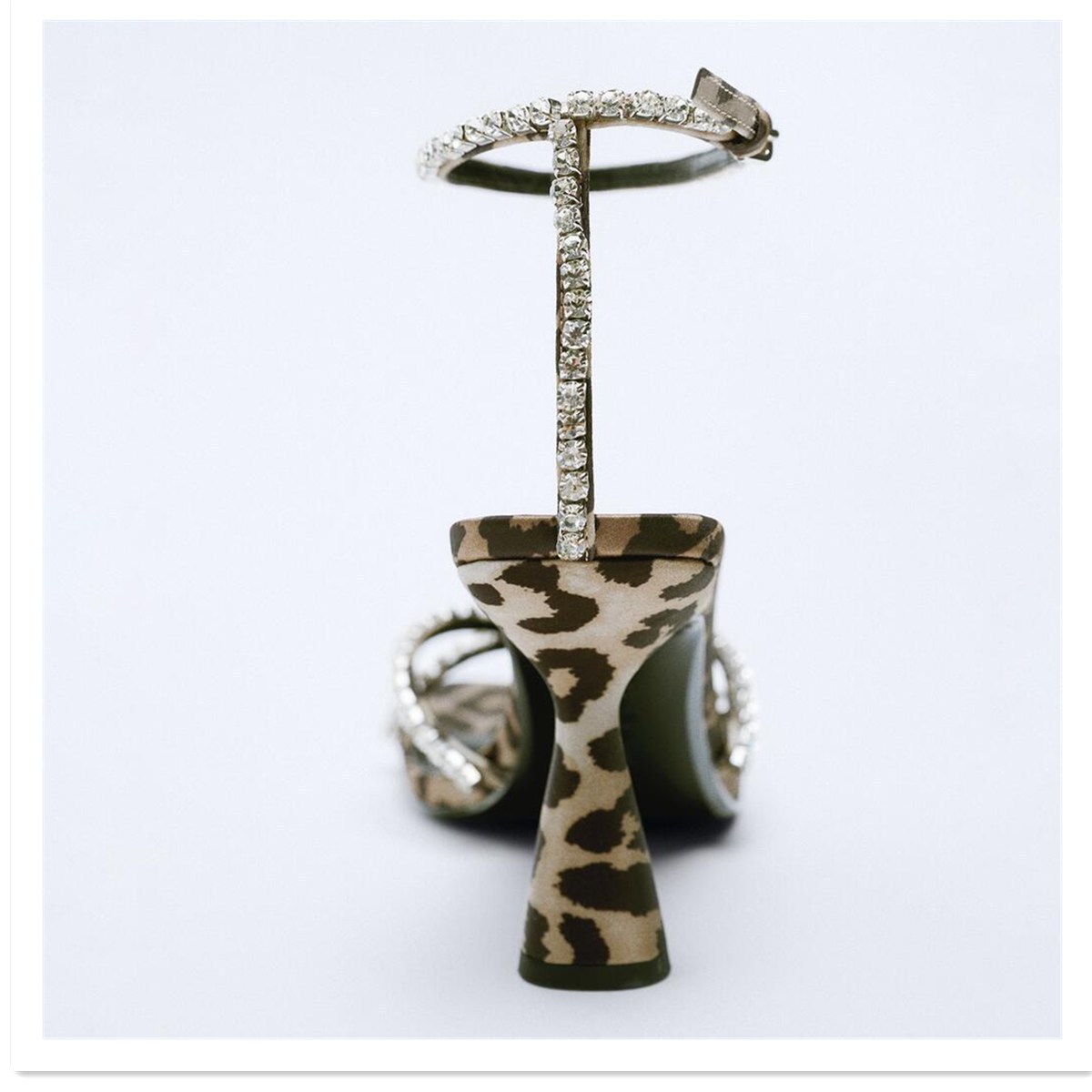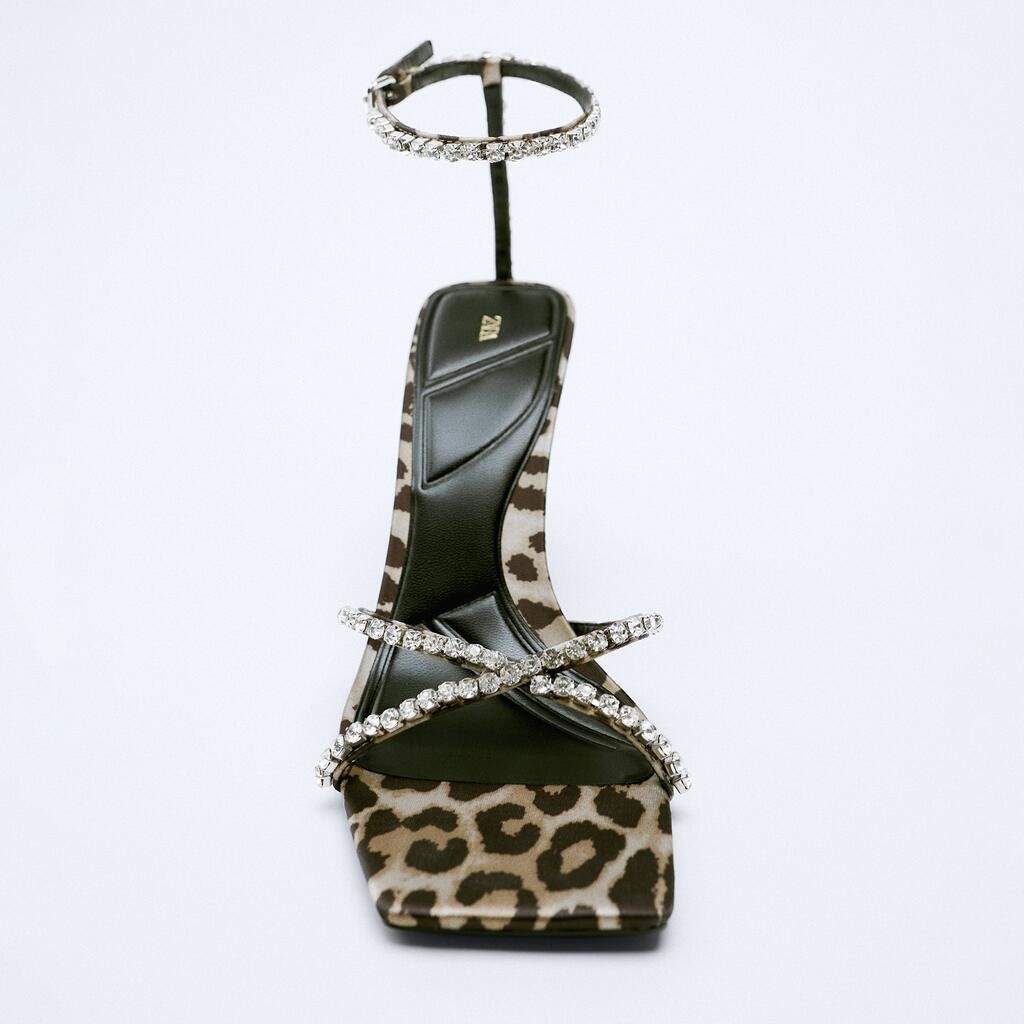 Fashion sexy leopard print rhinestone stiletto high heels women's 2022 summer back empty sandals large size