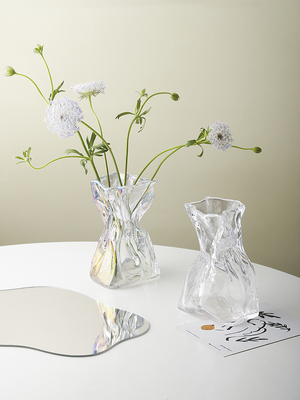 Ins wind glass vase living room advanced sense of colorful origami small vase creative hydroponic flower arrangement ornaments