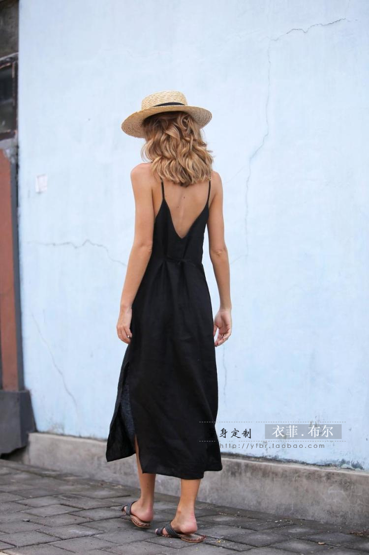 European and American holiday style loose look thin linen medium length V-neck halter belt halter dress Thailand beach skirt