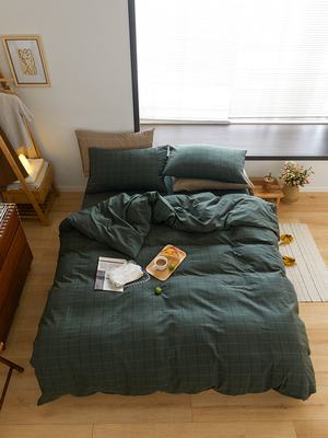 Wool four-piece bed sheet quilt cover cotton winter cotton three-piece bedding simple Nordic grid