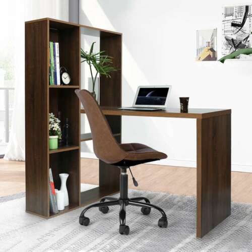 L-shape Computer Desk Workstation w/ Large Open Cabinet Bookshelf Plants Holder