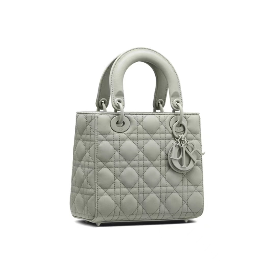 Dior Lady Dior My AbcDior concubine bag matte calfskin rattan pattern one shoulder oblique shoulder handbag women's style gray
