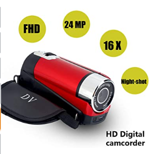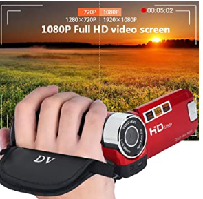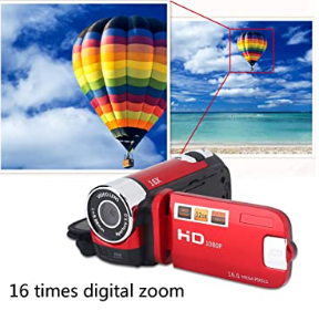 Handheld Camera 1080P FHD 16x Digital Zoom Trabar DV Digital Camera with COMS Sensor, Built-in Speaker, 270° Rotating Screen, Camcorder(Red)