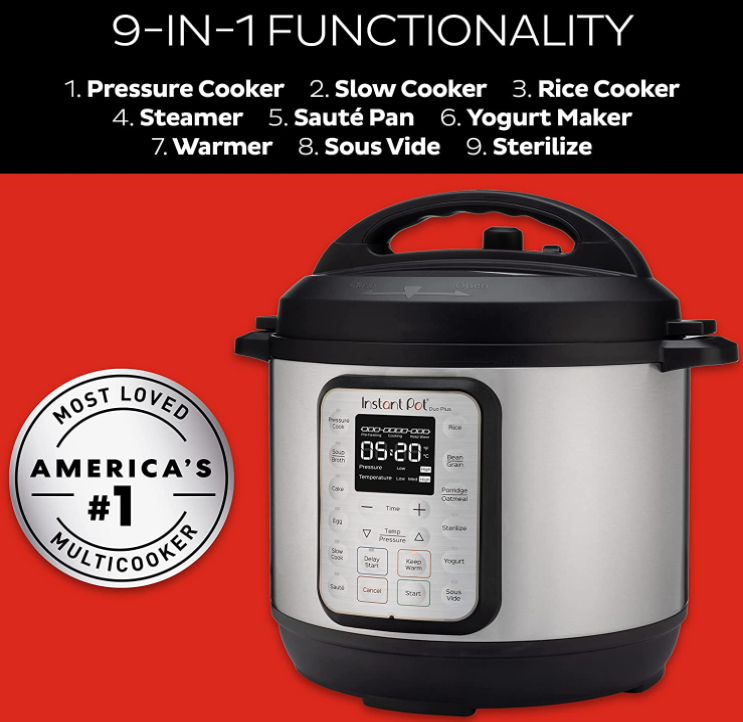 Instant Pot Duo Plus 9-in-1 Electric Pressure Cooker, Slow Cooker, Rice Cooker, Steamer, Wok, Yogurt Maker, Warmer & Sterilizer, 3 Quart Stainless Steel/Black