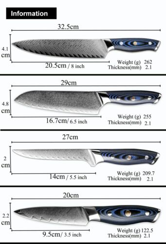 Full Tang Japanese Kitchen Knife Set VG10 Damascus Steel 67 Layers 4PCs Knives L
