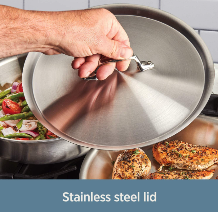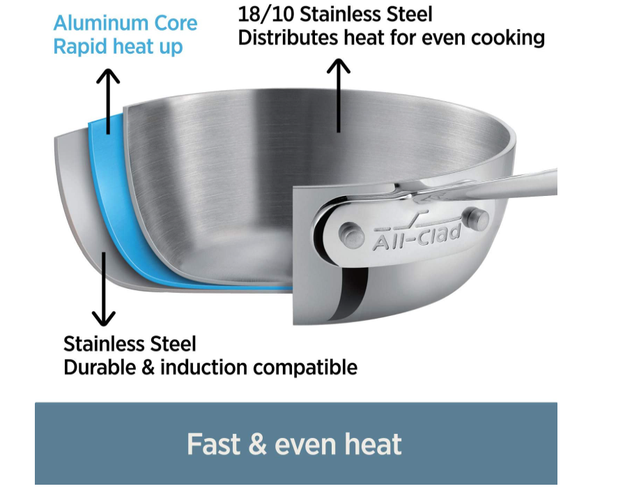 • Classic tri-ply construction, made with a responsive aluminum core bonded together with 2 layers of durable, stainless steel all the way around for maximum durability and fast, even heat distribution