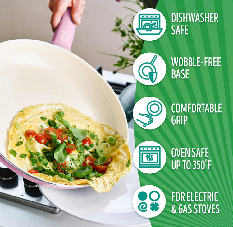 • Product 1: Our healthy and easy-to-clean ceramic nonstick coating is derived from sand and free of PFAS, PFOA, lead, and cadmium for effortless cooking and quick cleanup