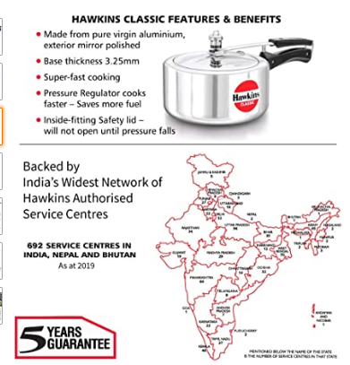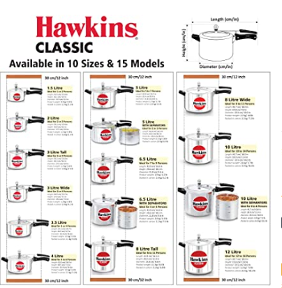 Hawkins Classic CL35 3.5 L Aluminum Pressure Cooker, Small, Silver
