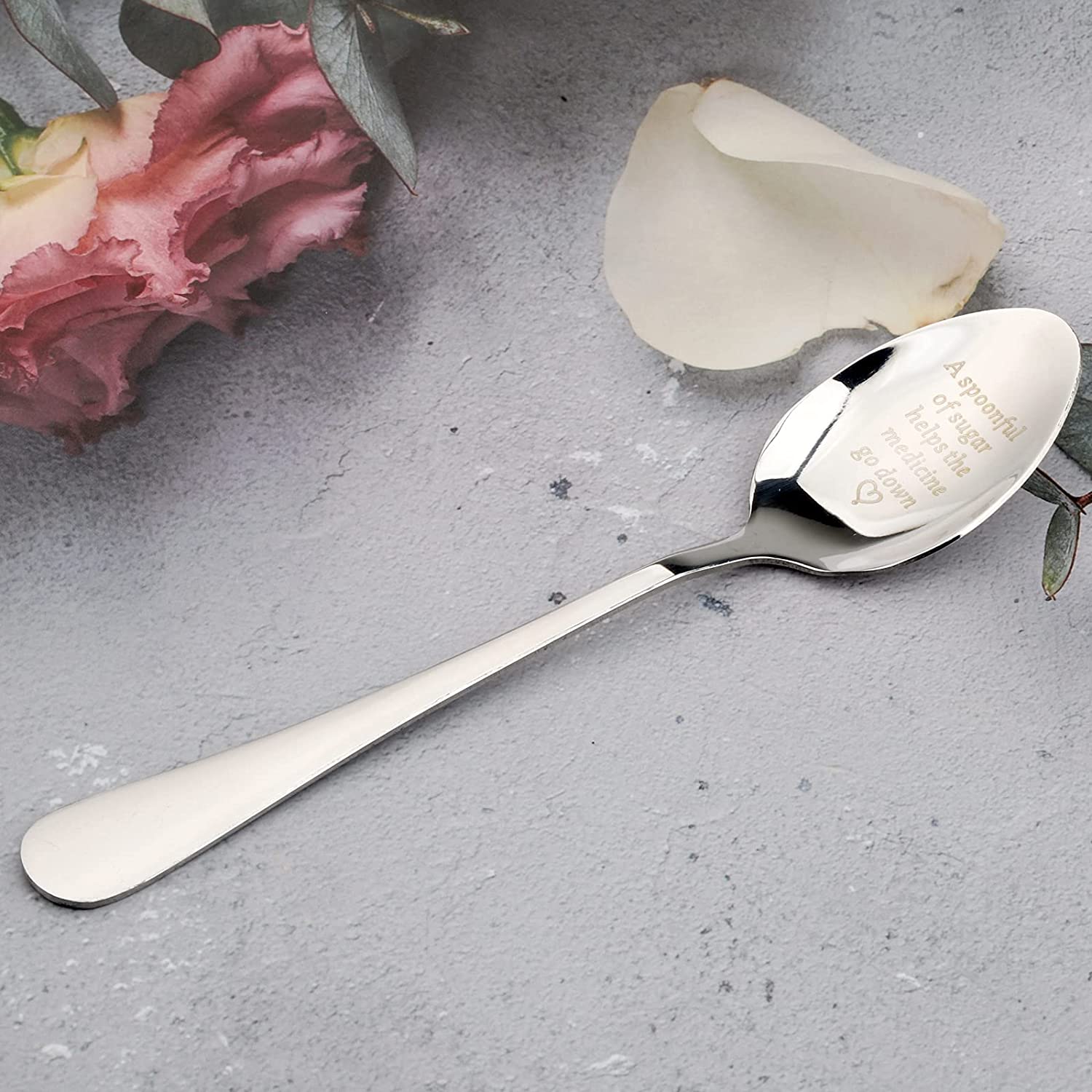 Carved stainless steel spoon A spoonful of sugar helps * drop.