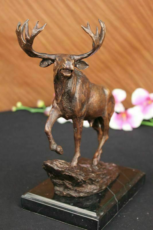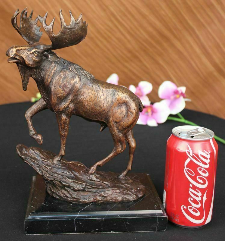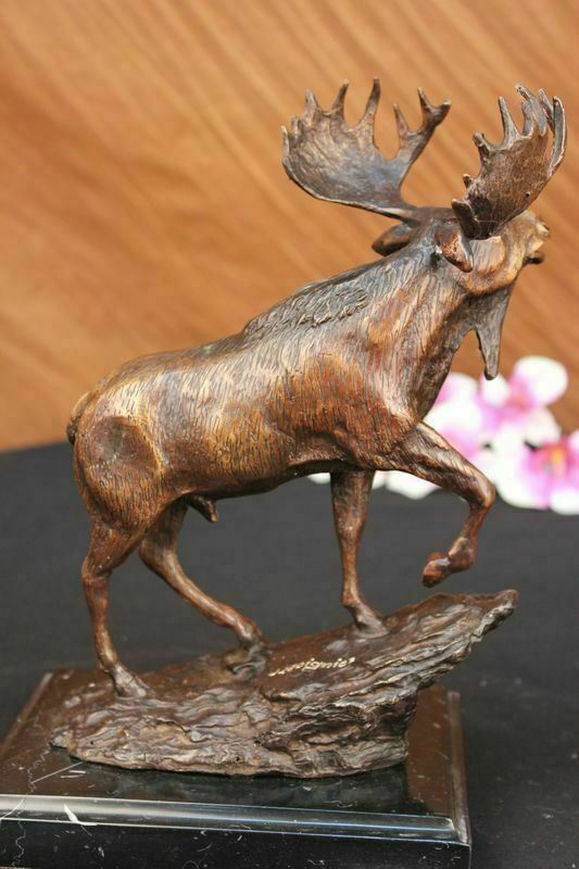 Moose Hunter Lodge Bookend Wildlife Art Signed Bronze Marble Statue Decorative