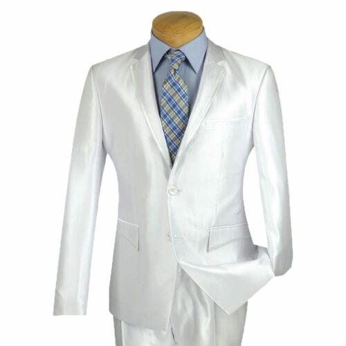 VINCI Men's White Sharkskin 2 Button Slim Fit Suit w/ Contrast Trim NEW