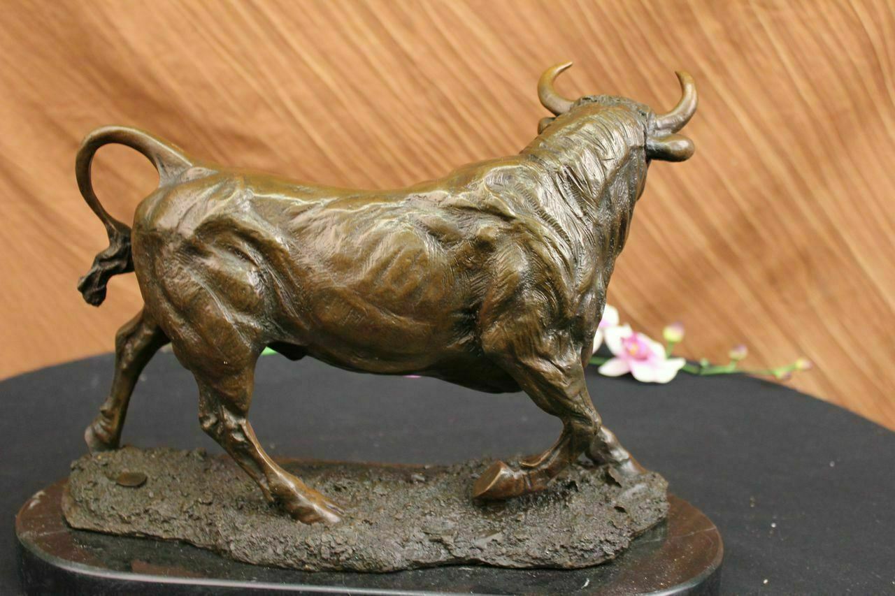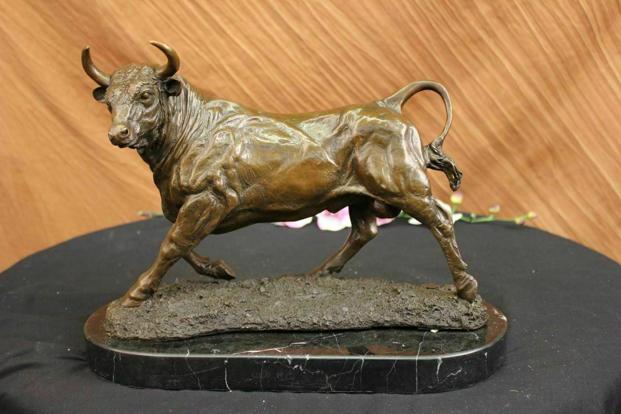 Solid Bronze Sculpture of a Bull Marble Base Abstract Art Deco Figurine Artwork