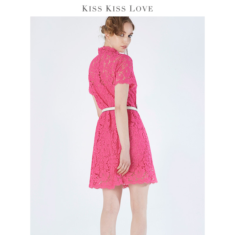 Suitable age: 25-29 years old size: S M L XL Pattern: solid color style: Street collar: stand collar waist: loose waist garment front: pullover color classification: rose red sleeve type: Conventional combination form: single item: FD72337 Year Season: 2022 Spring Sleeve length: Short sleeve skirt length: Maxi skirt popular elements/craft: lace Material composition: cotton 34% polyamide fiber (nylon)34%