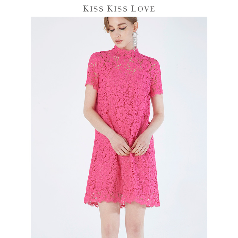 2022 New stand collar small ceremony rose lace dress Loose short sleeve lace dress