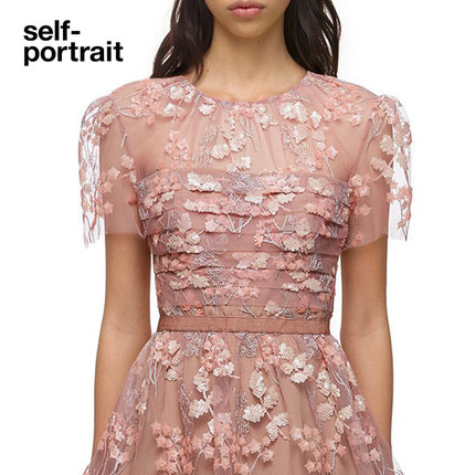 Brand: Self-portrait Suitable age: 25-29 Years old Size: 04 06 08 10 12 Pattern: Solid color style: Sweet collar: Round collar waist: mid-waist coat Front: pullover Color classification: pink floral sleeve: Conventional combination form: Item No. : SWF323Y06500 Skirt Type: A-line Skirt Year Season: Summer 2021 Sleeve Length: Short sleeve Skirt Length: Short skirt popular element/craft: Lace profile: A-line