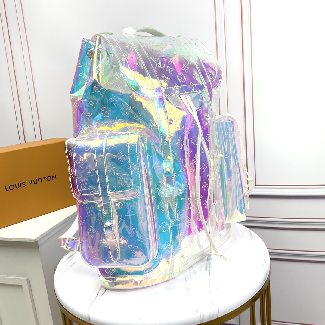 Chrlstopher Large Backpack This colorful christopher Large Backpack shows the advanced vision of Louis Vuitton Men's Art Director virgil abloh: the collision and interweaving of personal youthful vitality and Louis Vuitton's classic elegant connotation, monogram printed pvc material, large-size design, bold rainbow colors, very eye-catching, and the ingenious integration of fashion style and practical characteristics. It made its debut in autumn and winter of 2004. The large-size design inspired by mountaineering backpack is an ideal choice for traveling and weekend trips. The large outer bag is very practical, while the metal studs and lv letter decorations are the finishing touch to highlight the brand connotation. With super capacity, a backpack can get everything it needs when going out of town.