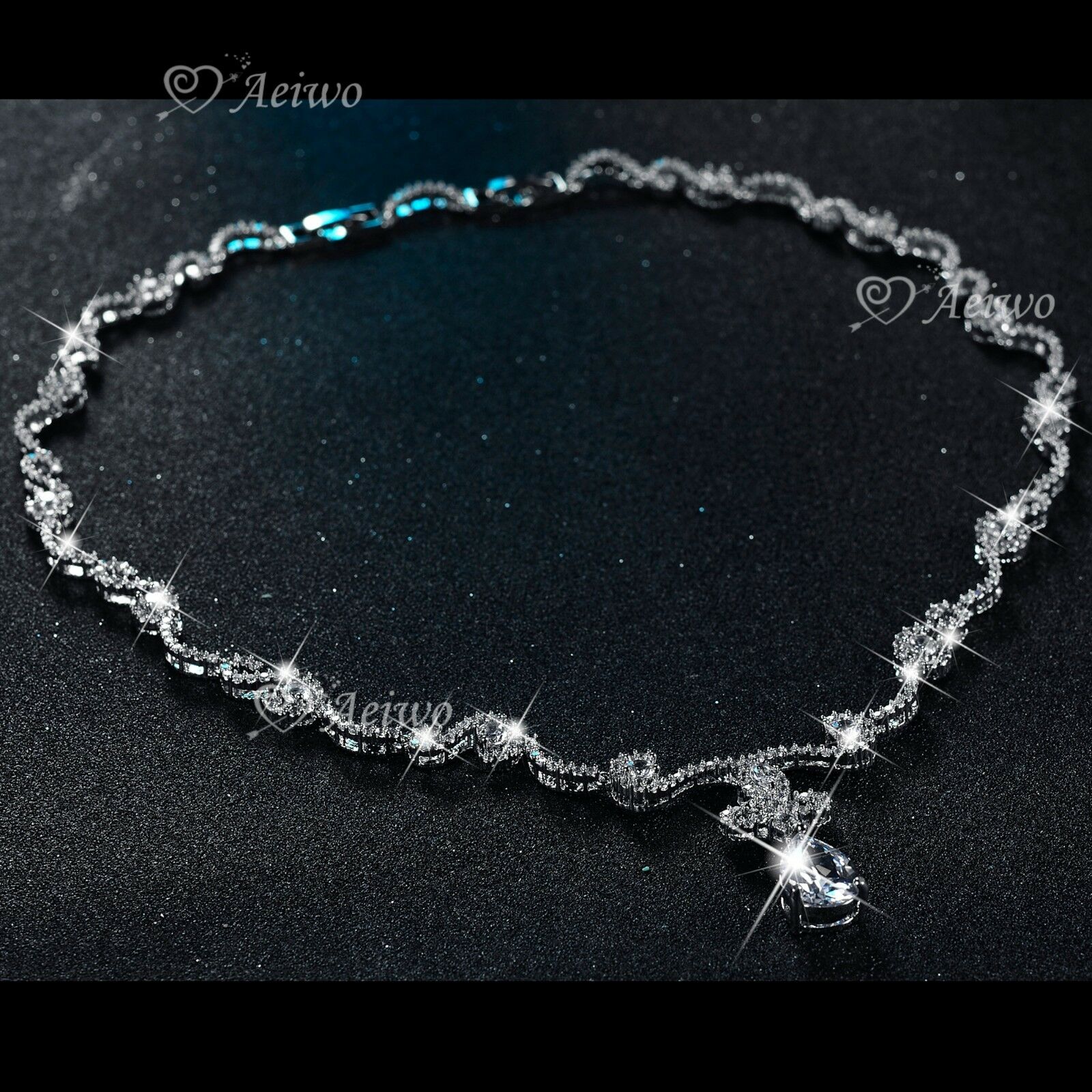 18K WHITE GOLD FILLED SIMULATED DIAMOND WEDDING PARTY NECKLACE LUXURY