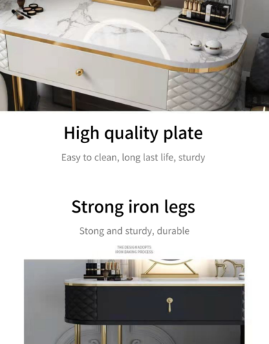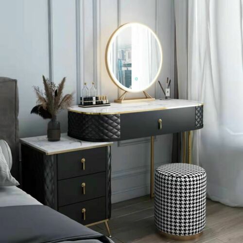 Luxury Modern Pine Dressing Make up Table With LED Light Mirror Drawer and Chair