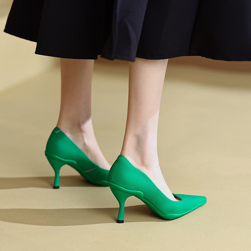 Explosive! Fan buoyancy 2022 new lychee grain cowhide single shoes women's stiletto pointed high heels ZF610