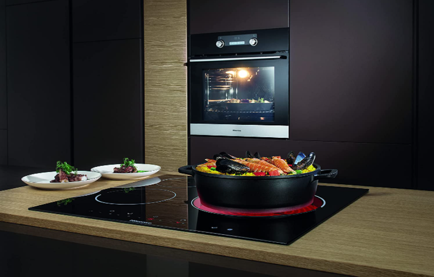 • Die Glaskeramikkochplatte bietet eine elegante Oberfläche und den Vorteil einer schnellen Erwärmung, unabhängig von der Art der Pfanne.