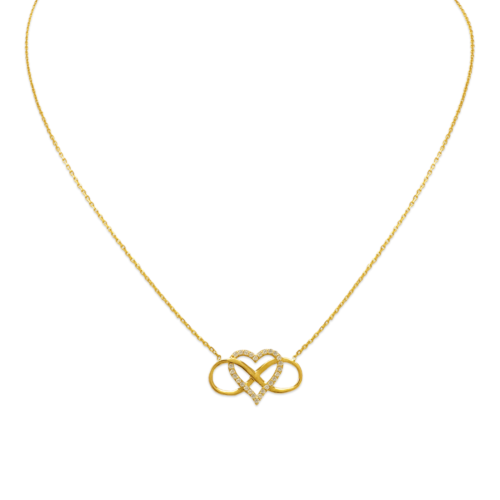 Fancy Infinity Heart Pendant Necklace CZ Forever Love Necklace 14K Solid Gold