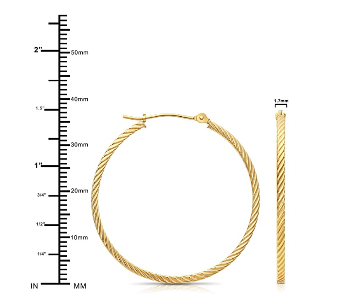 • These hoops are made of 14K gold with "14K" printed on them to certify and guarantee quality