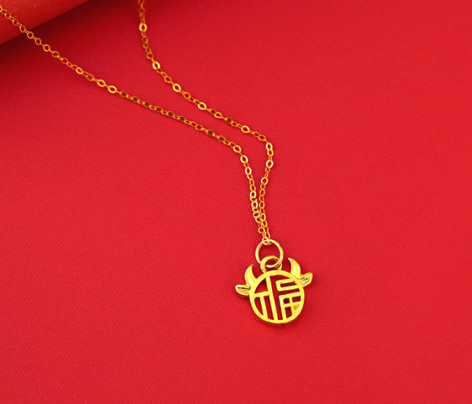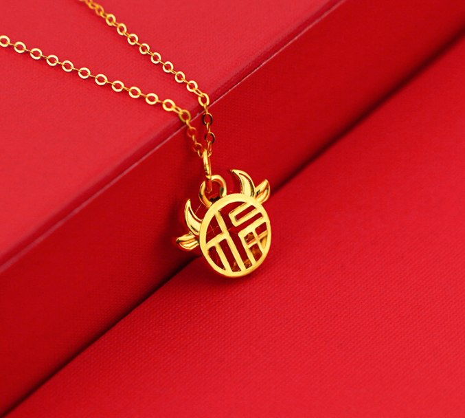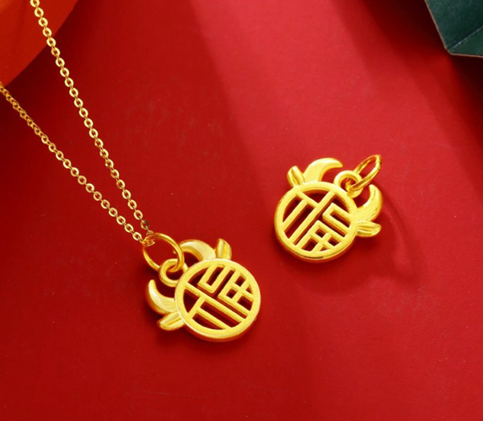 Gold necklace 999 foot Jinfu pendant small plate Fuzi pure gold gifts for men and women couples bullish.