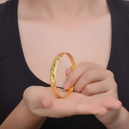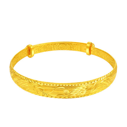 Pure gold jewelry, plain golden dragon and phoenix bracelet, ladies' gifts for elders.