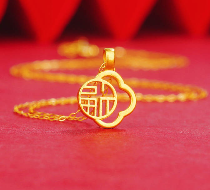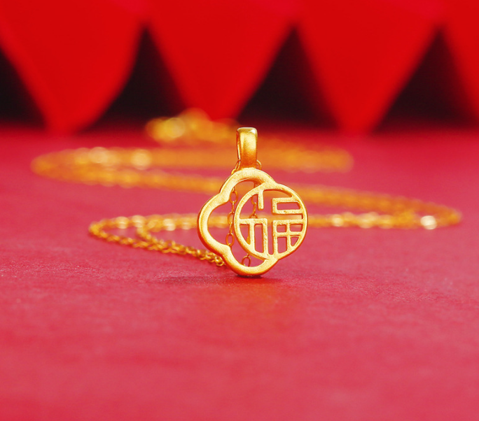 3d gold necklace pendant with gold characters, 999 gold pendant with gold characters, online celebrity explosions are positive
