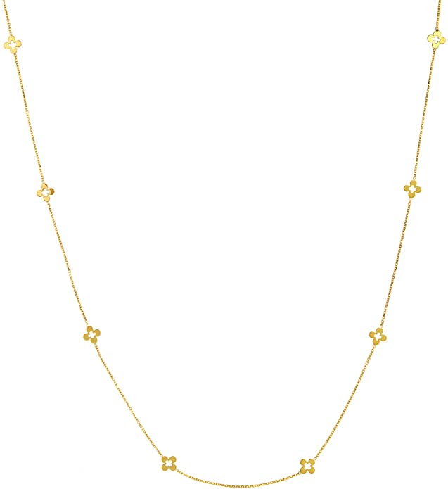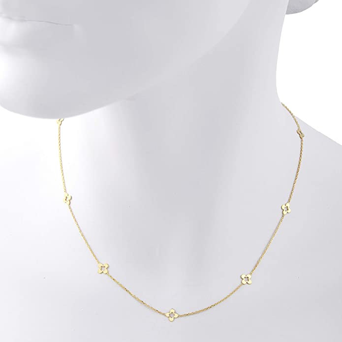 14k Italian gold four-leaf clover flower stand necklace 45.72cm.